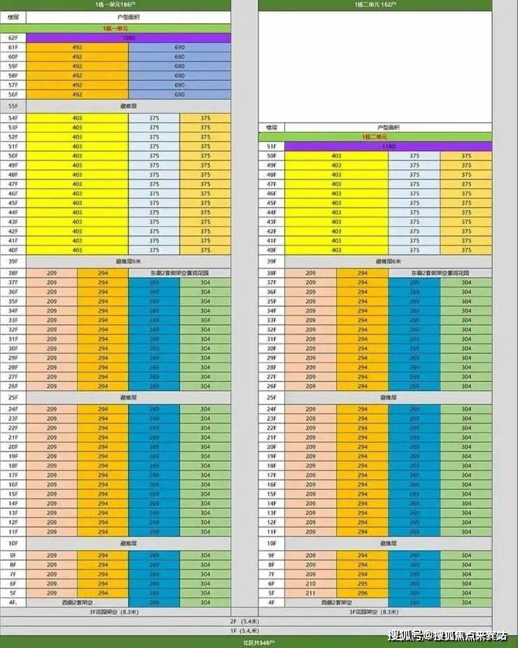 1号楼26-38楼3300万-3400万,单价约15.7/㎡-16.2/㎡