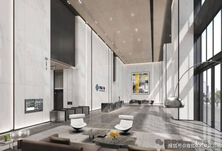 【大堂】A座挑高10.5m,裙楼独立大堂11.7m