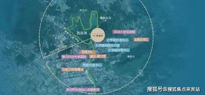 项目位于西丽度假村,旅游休闲资源丰富,主打生态景观。高层西北侧可眺望西丽湖,东南侧被深圳野生动物园(有消息称动物园原址规划为高校用地,或搬去坪山)和西丽高尔夫俱乐部环抱,远看塘朗山公园。
