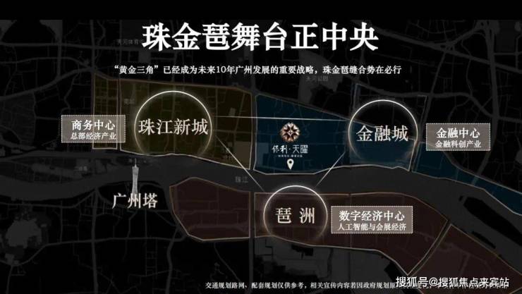 全维路网—临江大道、花城大道、过江隧道连接珠金琶;便捷地铁—员村站上盖,5号线三站珠江新城站,11号线1站即达琶洲;