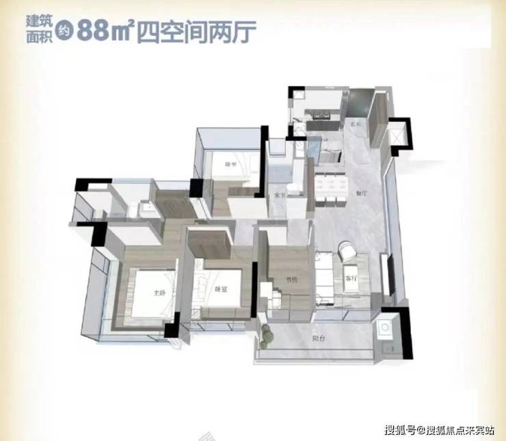 2.在售楼栋:目前在售的户型包括88平四房和105平两种户型,设计精巧,满足不同家庭的需求。