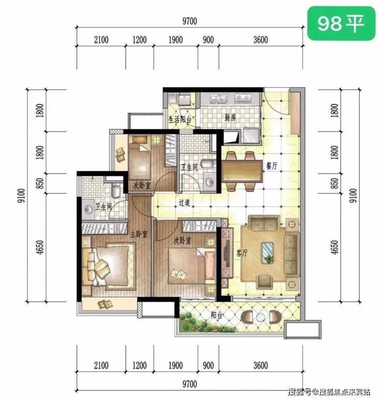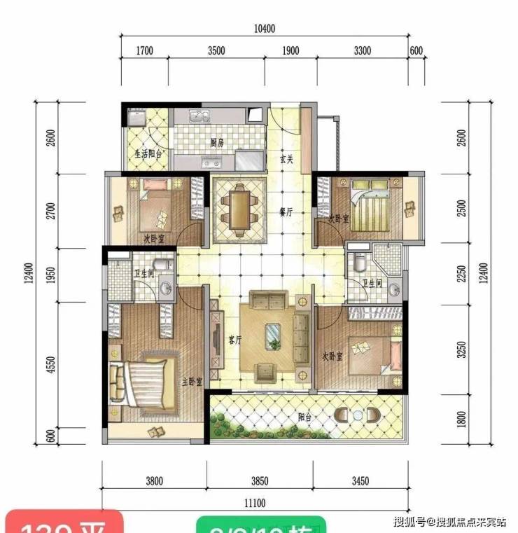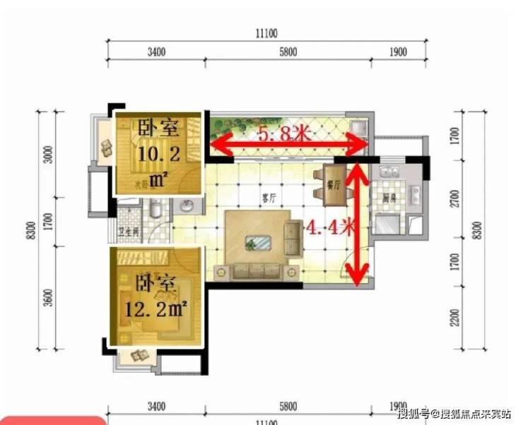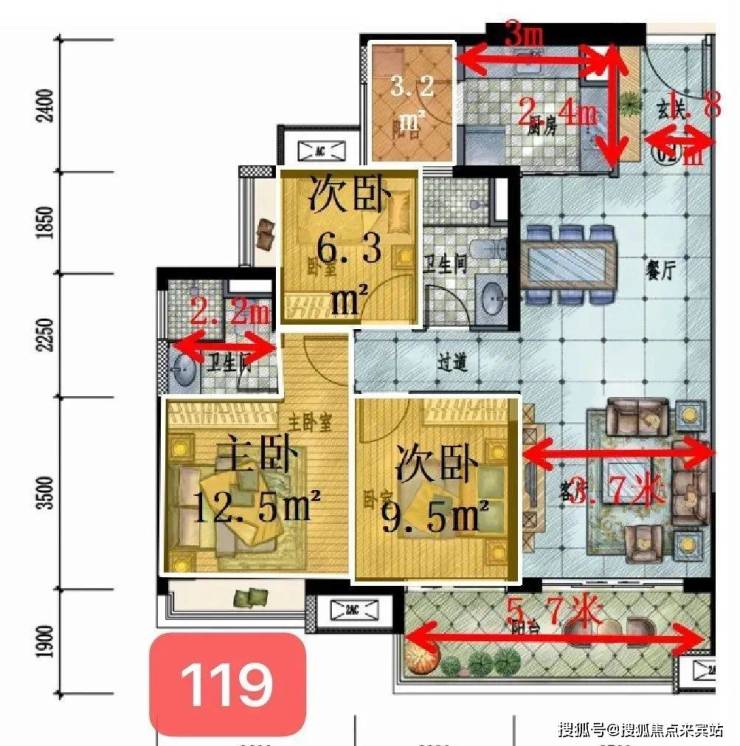 5.8m宽厅+12平主卧+270°瞰景飘窗
