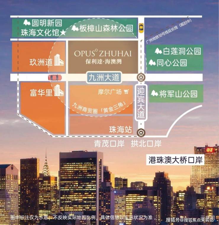 项目地处九洲大道与迎宾大道交汇处,珠海市中心城市黄金双中轴;
