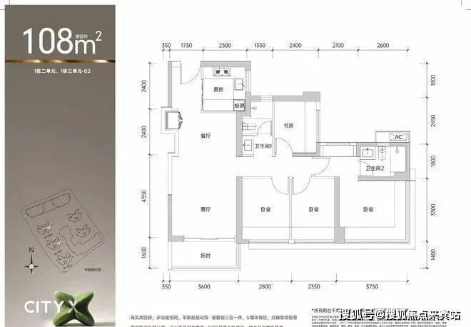 98㎡三房两厅两卫(舒居三口之家首选):经典竖厅设计,分为两种子户型: