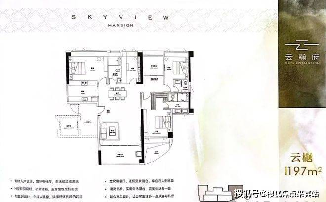 197㎡南向 5 房 2 厅 3 卫:作为越秀区唯一在售 5 房户型,仅 18 套,稀缺性不言而喻。四面采光,东单边户型,三套房双阳台设计,约 90% 高使用率。汇悦台同款嘉格纳 6 件套厨电,卫浴间全地暖铺设,专梯入户私享电梯厅,奢适大平层,满足对品质生活有极致追求的家庭,无论是三代同堂还是多成员家庭,都能享受宽敞舒适的居住体验。