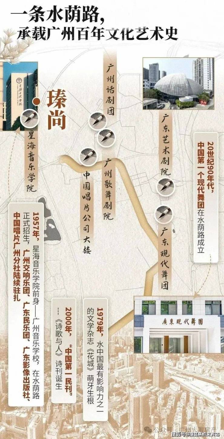 如今,短短1公里的水荫路,集聚广州歌舞剧院、广州话剧团、星海音乐学院、中国唱片公司大楼......数十家文化机构、上百位艺术人群。