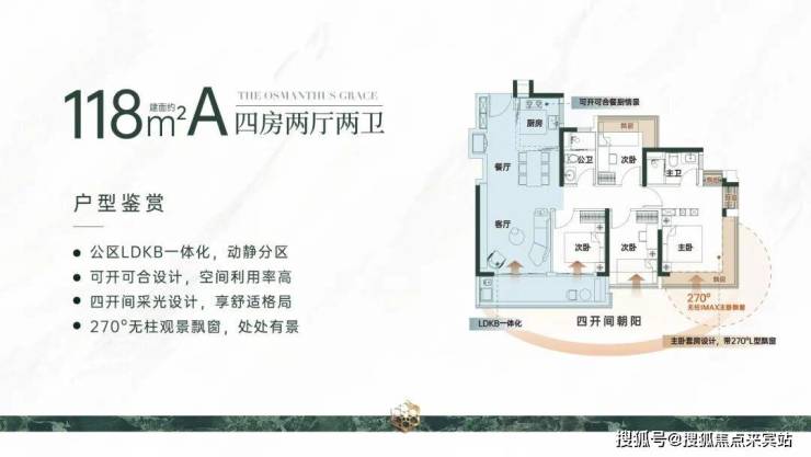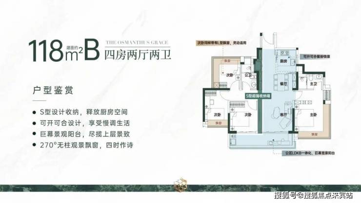 ③9 个飘窗赠送+强大收纳;④55 米跨度入口星空顶,五星级酒店归家仪式感;