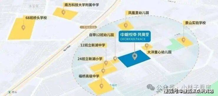 项目周边有南方科技大学附属中学、宝安区桥头学校、立新湖外国语学校等学府,未来还将配建一所12班幼儿园和一所36班九年制学校。