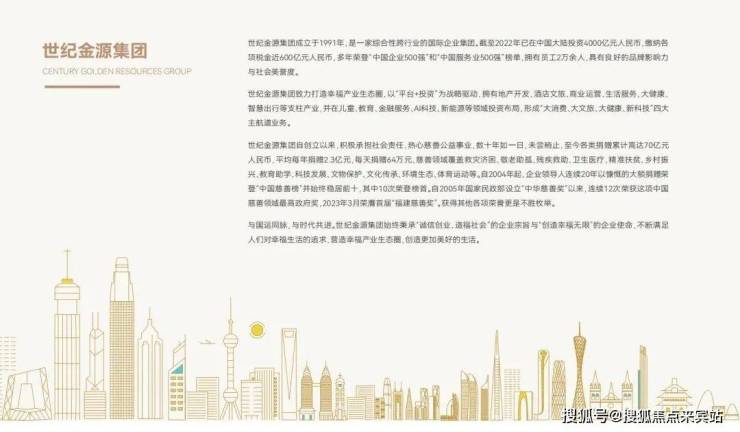 世纪金源成立于1991年,是一家综合性跨行业的国际企业集团。截至2022年已在中国大陆投资4000亿元人民币,缴纳各项税金近600亿元人民币,多年荣登“中国企业500强”和“中国服务业500强”榜单,拥有员工2万余人,具有良好的品牌影响力与社会美誉度。