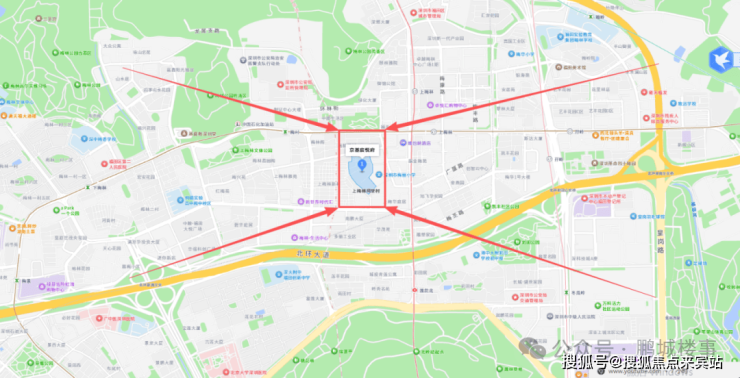 距离地铁4号线“上梅林站”/9号线“梅村站”约300米,周边还有在建的22号线,地铁出行便利。2站到少年宫,3站到市民中心。项目南侧临近北环大道,自驾出行可快速到达福田中心区及南山、罗湖、龙华等区域。