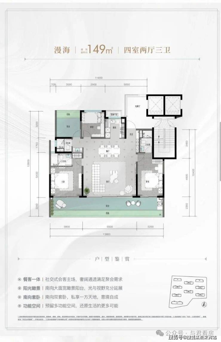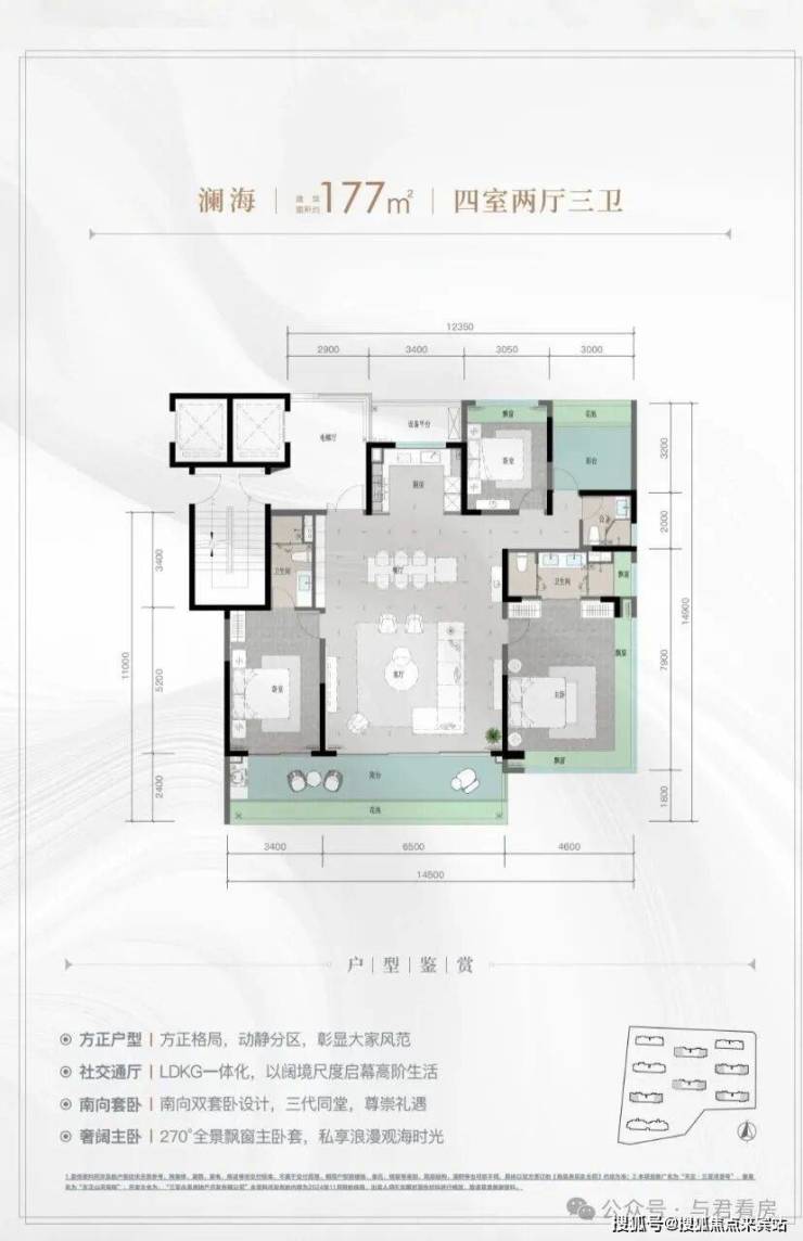 规划建筑面积约126-213㎡观海奢装大平层,约3.1米阔绰层高,部分户型创新设计270°全景飘窗主卧套、四开间朝南等,全成品高标奢装,营造全新舒居体验。