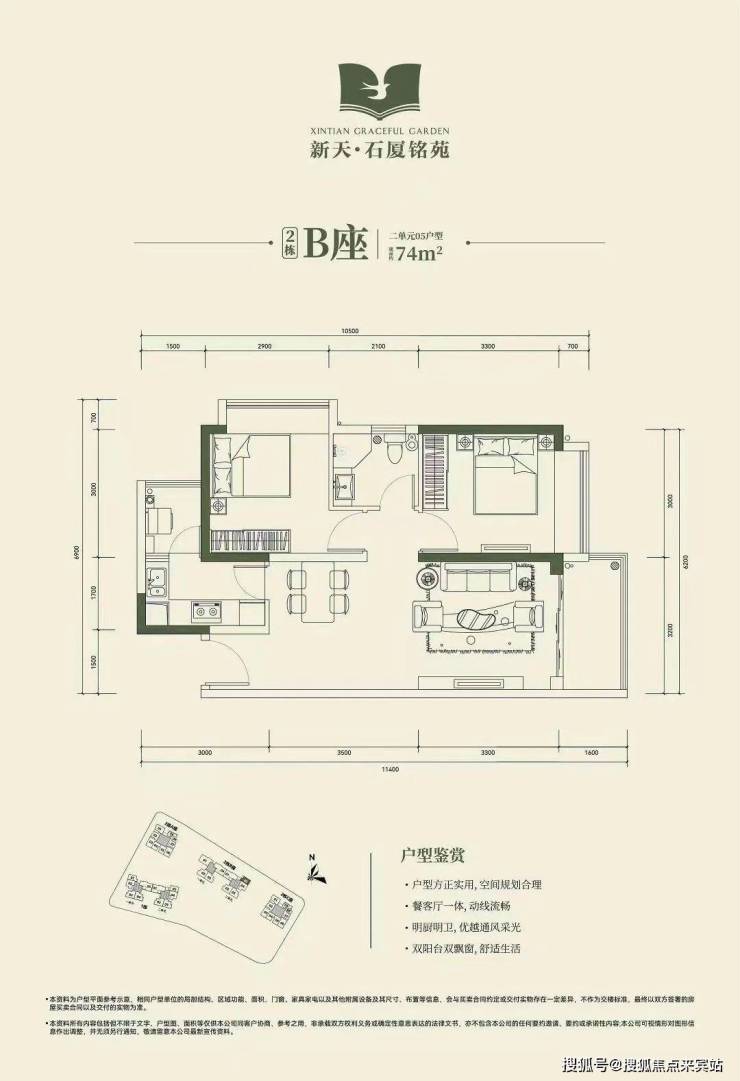 2房2厅1卫74㎡