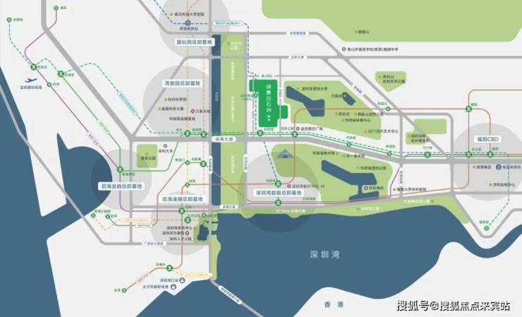 从城市发展站位上来说,每一座城市都有一条难以复制的城市发展主轴,一如纽约中央公园所在地。而在深圳,深南大道自东向西,绿景白石洲便地处城市GDP第一的南山区,深南大道与大沙河科创走廊十字交汇处,地理位置得天独厚。