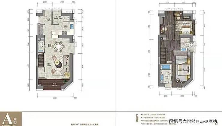 113㎡复式三房两厅三卫+工人房