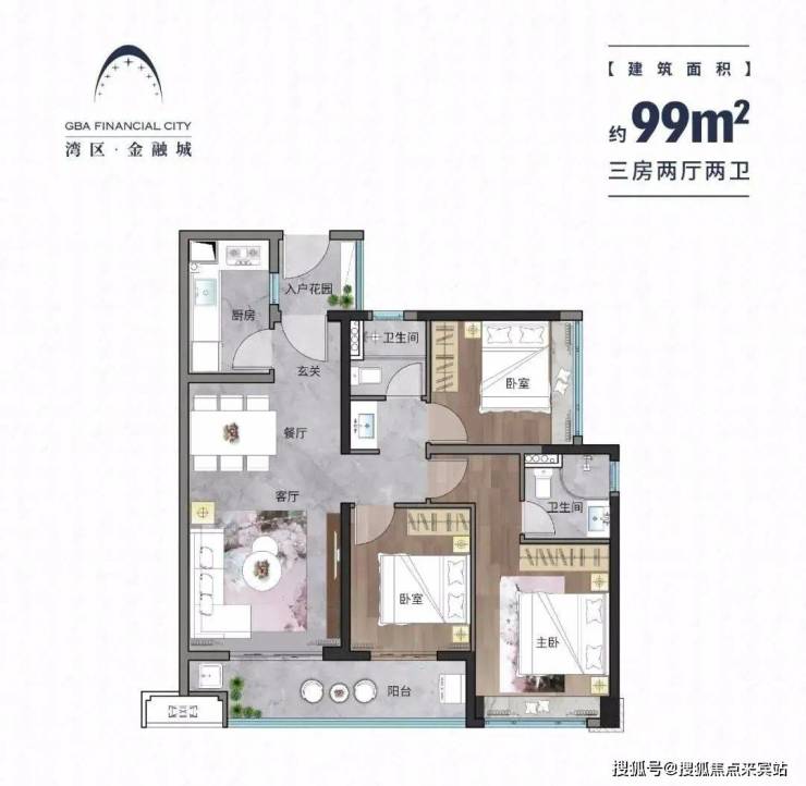 :经典三房设计,居住舒适,适合刚需和改善型家庭;