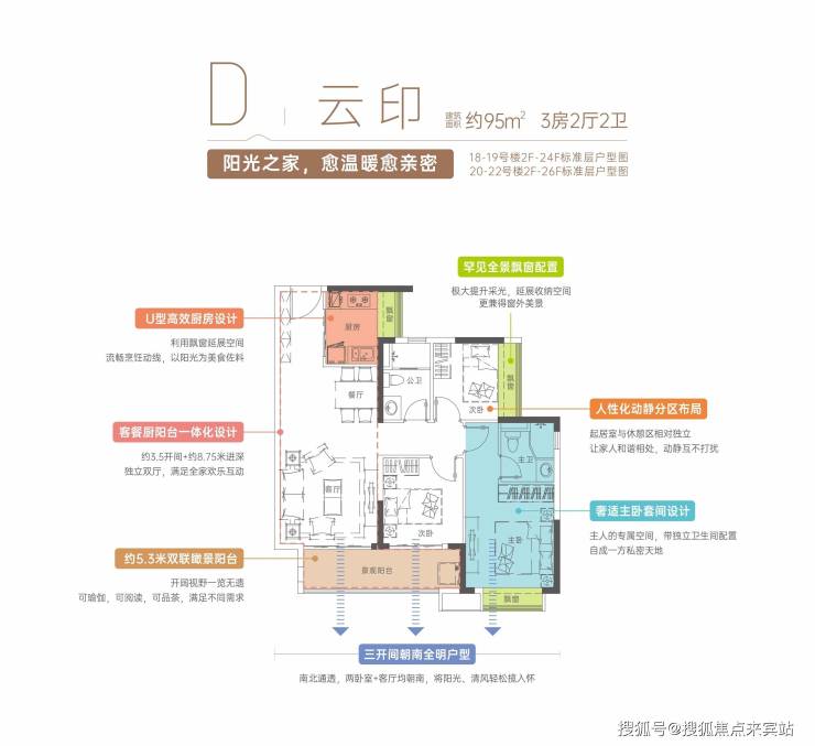 95㎡的三房两厅两卫,是刚需人群的首选户型。
