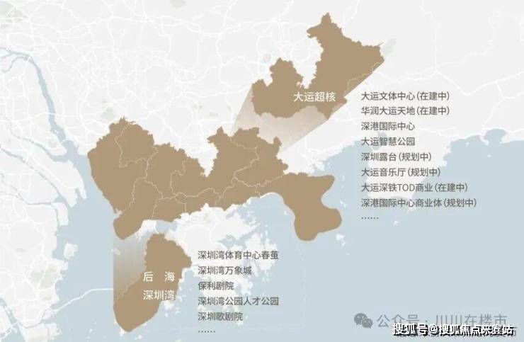 近享华润·大运天地约5万方纯商业空间 (已开业) 、深港国际中心的商业约36万方(规划中)、大运枢纽上盖-深铁x华润万象生活联手带来的TOD商业(在建中) 。