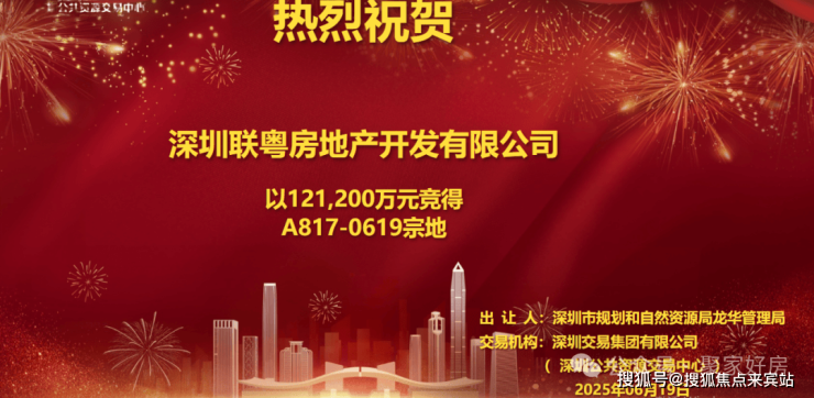 改地块经过30分钟65轮竞争,最终联发以12.12亿元斩获龙华A817-0619宗地,溢价46.6%。