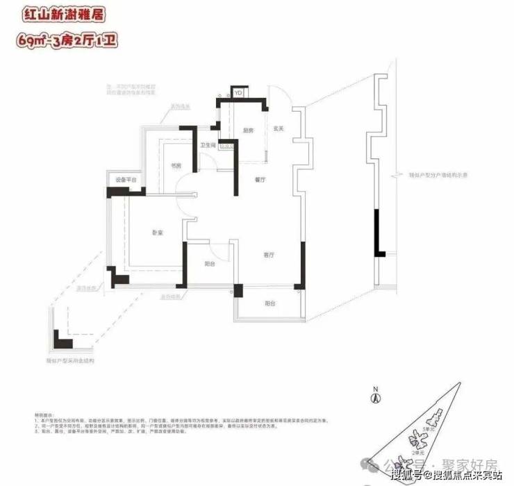 龙华红山,联发新澍雅居预计2026年一季度取证入市,户型相当炸裂,面积有69平的2+1房1卫,79-82平的3房2卫,99平的4房2卫户型,共332套房源,价格方面可以参考附近前期入市的联发臻著雅居,备案均价7.3万/㎡,当时折后均价约6.4万/平,期房精装交付,目前营销中心暂未开放,户型图供参考。