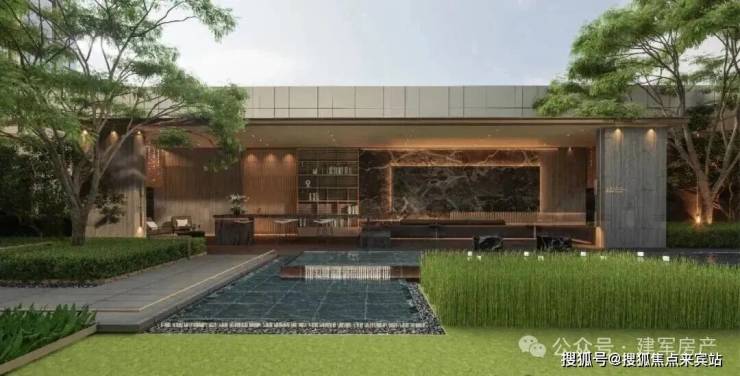 |“臻享森境”景观会客厅将自然之美与精致工艺融为一体,打造景观会客厅、艺术水景、户外吧台、阳光草坪等静谧空间。