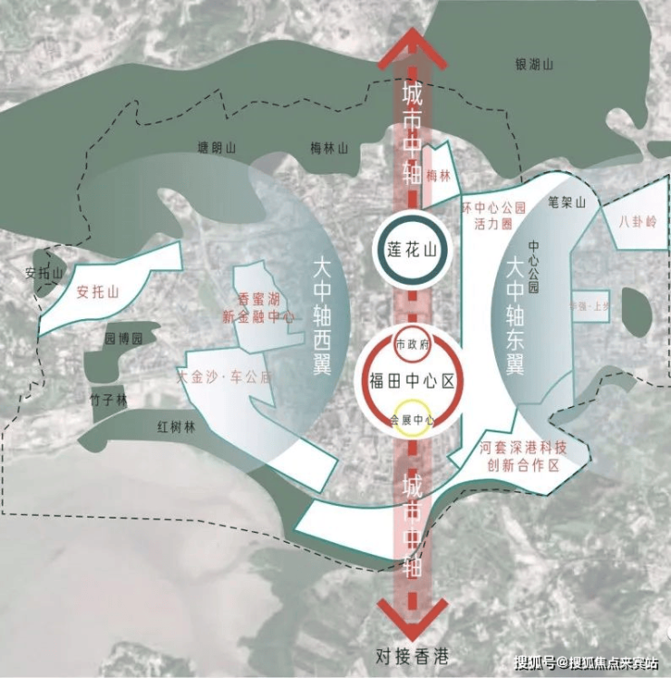 北邻香蜜湖新金融中心和车公庙2049未来之城,南接河套深港科创合作区