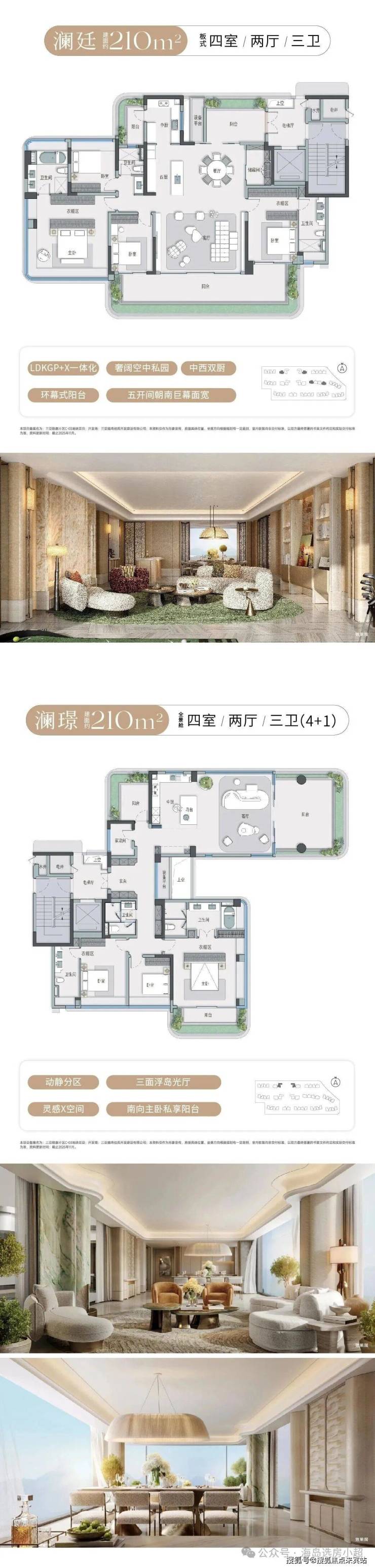 据说项目是三亚首发类四代宅的创新户型,在产品设计有不少亮点,比如三阳台设计,入户庭院花园打造;再比如全景舱设计,做到U型三面采光,比传统L型多一个景观面。