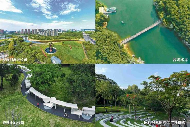生态公园:观澜河湿地公园、茜坑水库、观湖中心公园、民法公园、九龙山公园等;