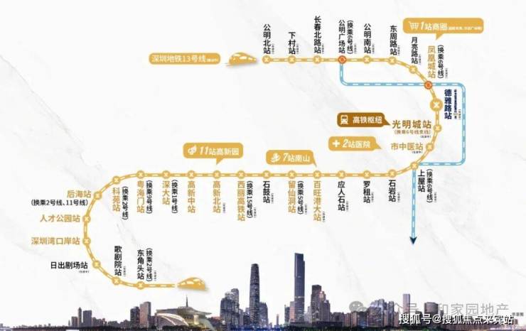 •地铁13号线(在建中):最优黄金科创线,7站南山,直达南山留仙洞、科技园、深圳湾,高效通勤线路