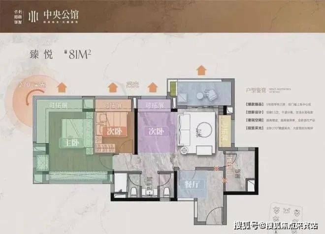 建面81平三房,主卧做到了南北对流设计,客厅预留了飘窗采光和通风都非常好。