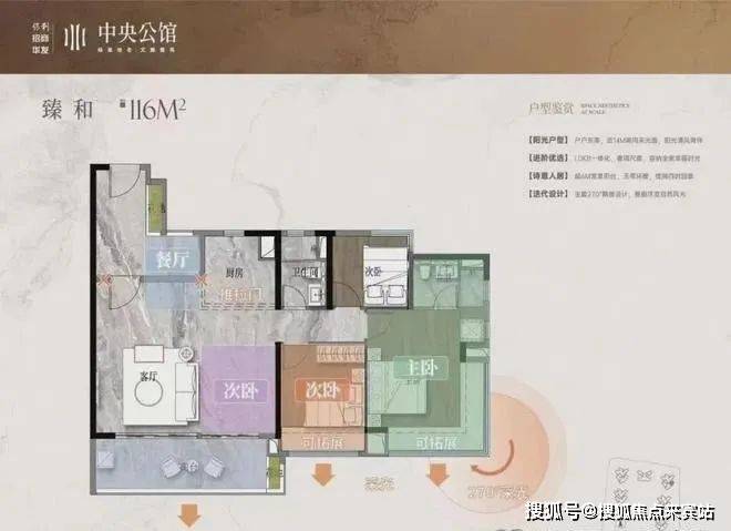建面116平3+1房,LDKB一体化,约14米的南向采光面,还有6米的宽景阳台,视野和采光都非常好。