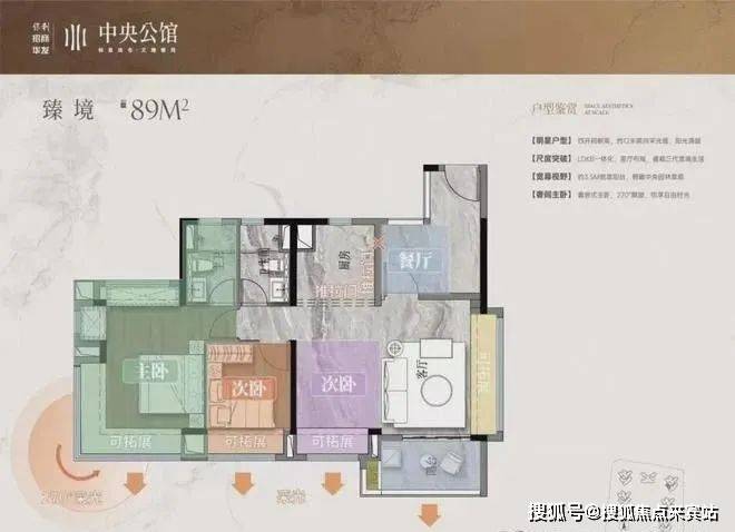 建面89平三房,分为A、B两个户型,南北对流设计,四开间朝南,公区没有承重墙,可以打通做大方厅,小何觉得这个是比较灵性的。