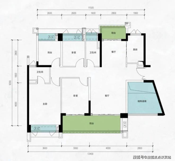 127m²带有约6.8米大开间阳台:3+2房得房率124%,别人都以为整个户型面积都拿来做房间,其实不然,还带来了约6.8米超大横厅、约6.8米超大阳台、达13.2米的南向采光面……