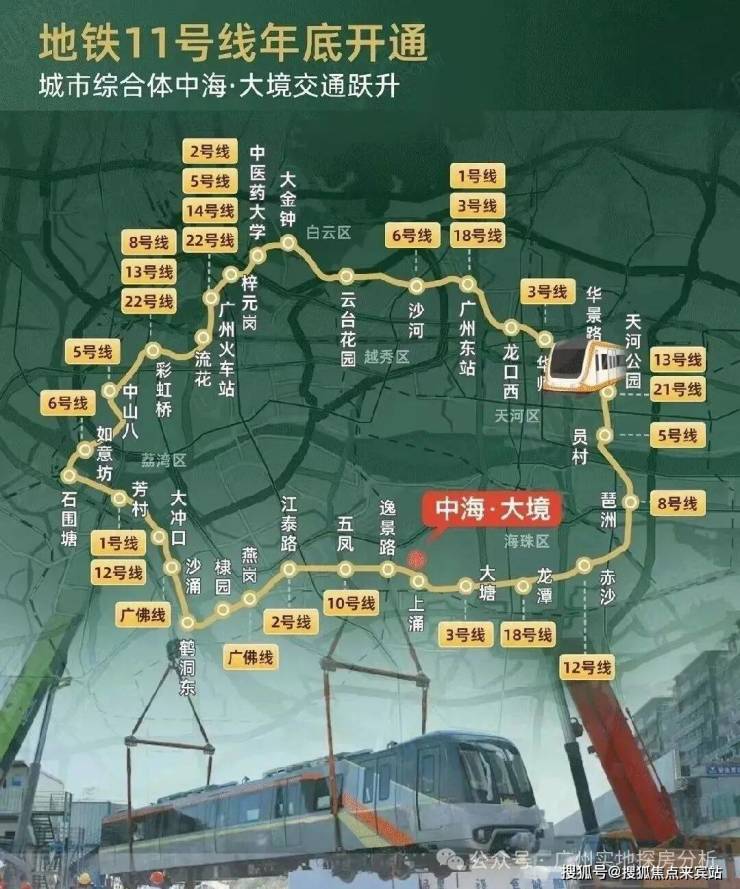 项目就在地铁11号线上涌站上盖,周边还有逸景路站,坐拥换乘之王的大流量,4站内有四条换乘地铁,4站可到琶洲珠江新城。