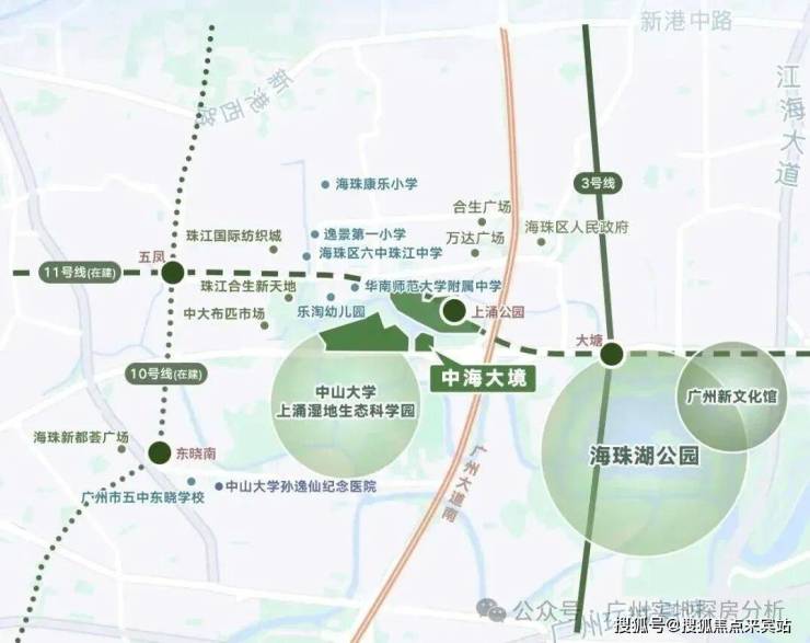 项目位于海珠区上涌果树公园北侧,就在广州大道南与新滘西路交汇处,海珠湖就在楼盘的东侧。一个地处核心+坐拥稀缺生态资源+配套全能+增量客观的全能项目。