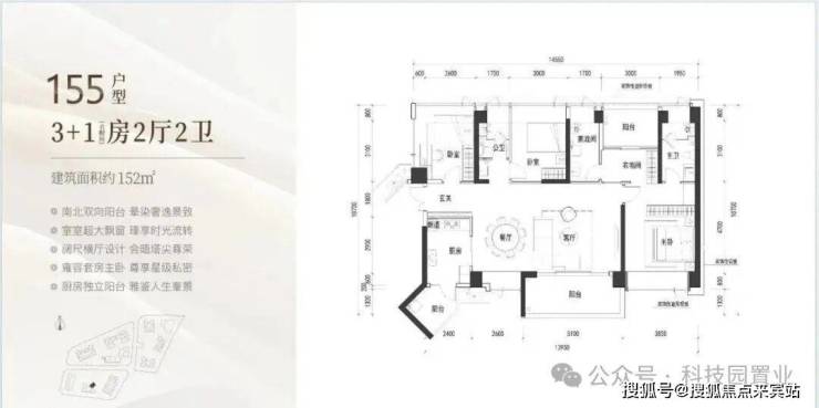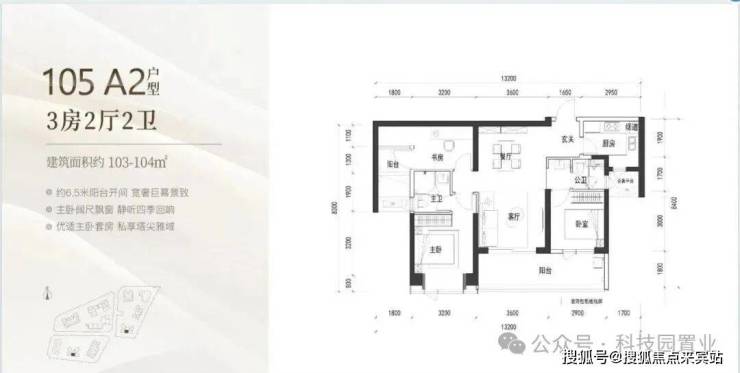 3️⃣四单元03号房105 A户型约998-1115万,9.5-10.6万/平方米