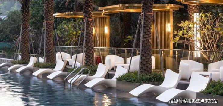园区结合现代东南亚设计风格,将生态都会雨林湾融入到园林中,双桥(雨林桥、雨水桥)规划,碧水湾溪约2000m²泳池设计,棕榈迎宾,于繁华里享静谧生活。、