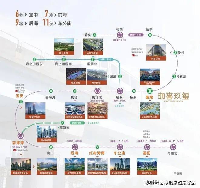 鸿荣源珈誉玖玺位于深圳宝安区中心路与凤塘大道交汇处,地处沙井核心生活区。沙井不仅在粤港澳大湾区发展轴心上,更是国家重大战略所在地,前海扩容受益者。项目周边交通便捷,地铁11号线塘尾站距离约300米,6站可达宝中,7站可达前海,便捷通达南山、福田等核心区域。