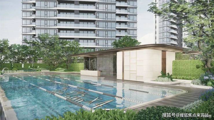 容积率2.8使得整个花园绿化覆盖面更广,相较于纯立体式园林,这里又能体验到更多的绿化花园和露天活动空间。小区泳池做的是户外阳光泳池,规格是长25米 × 宽(2.5米×4条)的标准泳道。