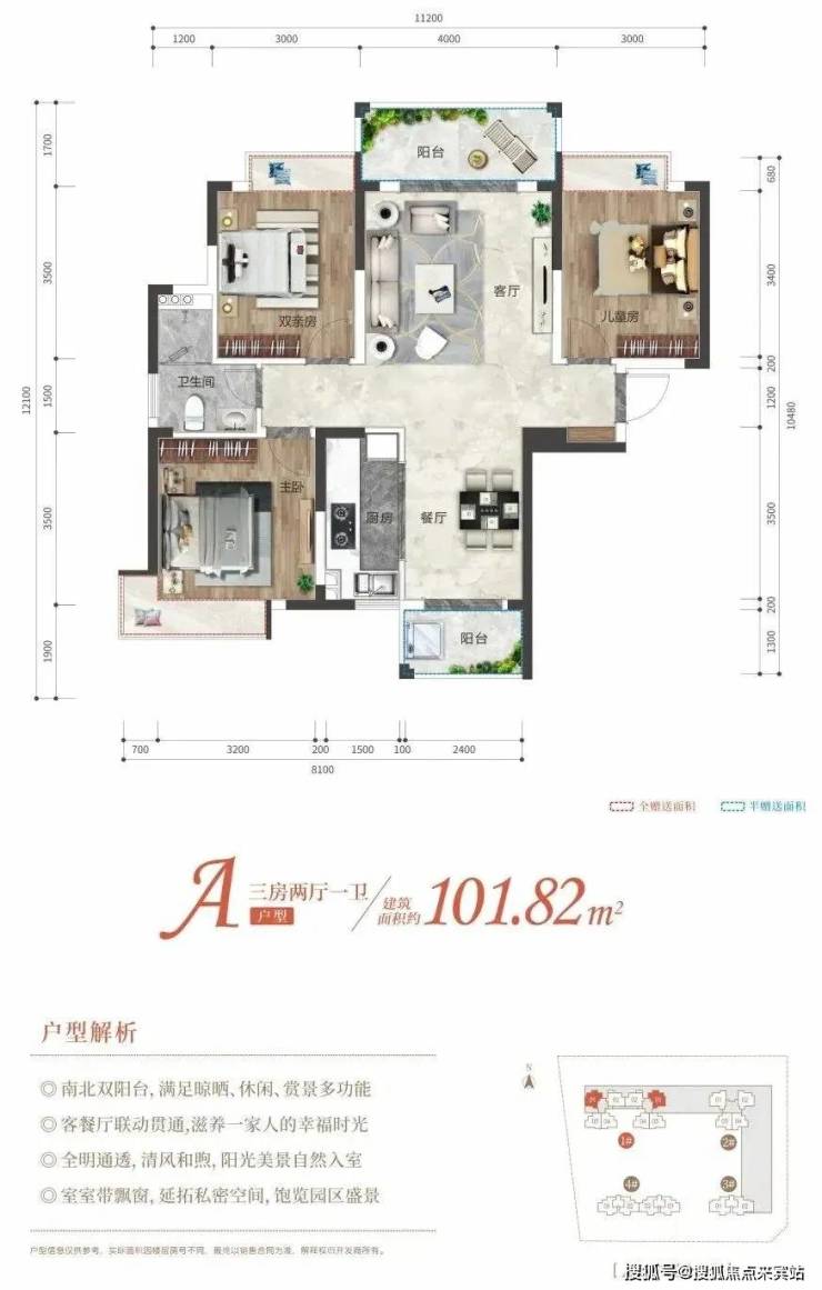 A区共4栋小高层,296套住宅,2#3#楼已售罄。1#楼(18层)和4#楼(16层)在售,约102/104㎡三房两厅一卫和约115/128㎡三房两厅两卫。