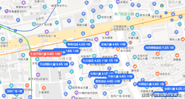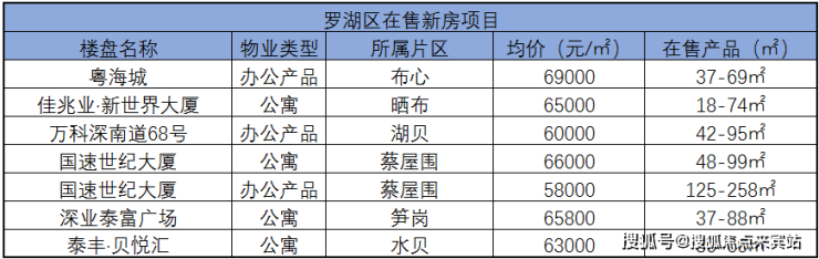 罗湖近两年的新房供应主要是商业类项目,新房项目分布相对零散,可对比不强。整体看公寓及办公这两类的新房产品价格在6万元/㎡-7万元/㎡之间,汇金天琅大厦是近两年新房同类产品定价较高的,但不可否认的是它的位置是最核心的,现状生活氛围,和商业成熟度是好的。