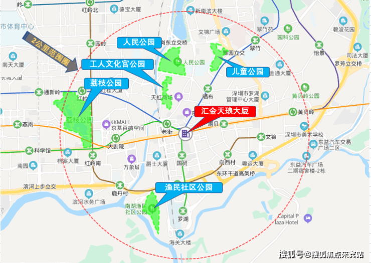汇金天琅大厦位于罗湖金三角核心位置,坐落东门、宝安南、人民南三大商圈的衔接点。周边集中式购物中心和大厦集聚,比如地王大厦、万象城、金光华广场和茂业百货等,区域内商业繁荣,人气较旺;是罗湖非常重要的“金三角”商圈,也是深圳最大规模的商圈。