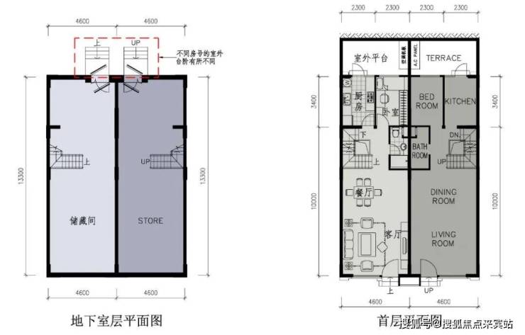 叠墅:下叠户型(约126㎡3房2厅3卫)