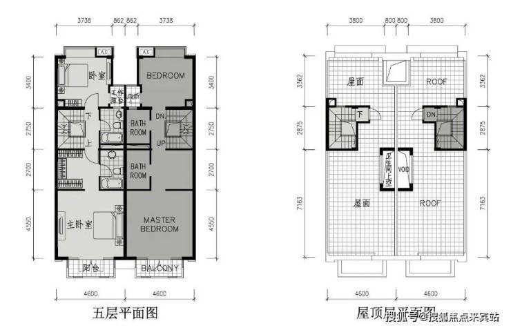 叠墅:上叠户型(约180㎡4房2厅4卫)