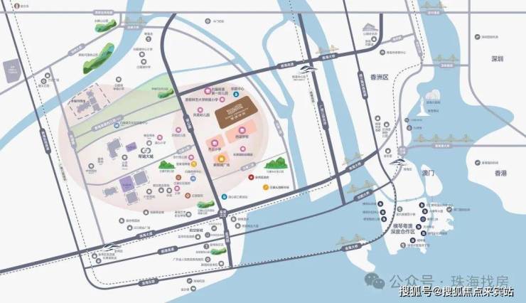 项目位于“西部中心城”先发区,东临鹤洲高铁枢纽,北接东湖新城核心区,扼守珠海西进“桥头堡”,由湖心路出发,可通过香海大桥等四座大桥快速抵达各城市核心区。