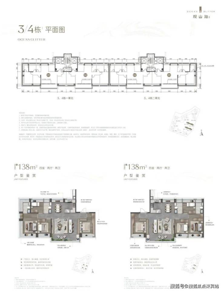 户型图已出,2T2户,专梯入户,南北通透,可改5房。端户01户型主卧双面采光,中间02户型的主卧无双向采光。