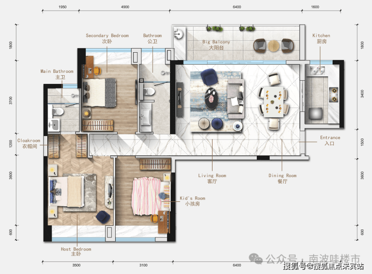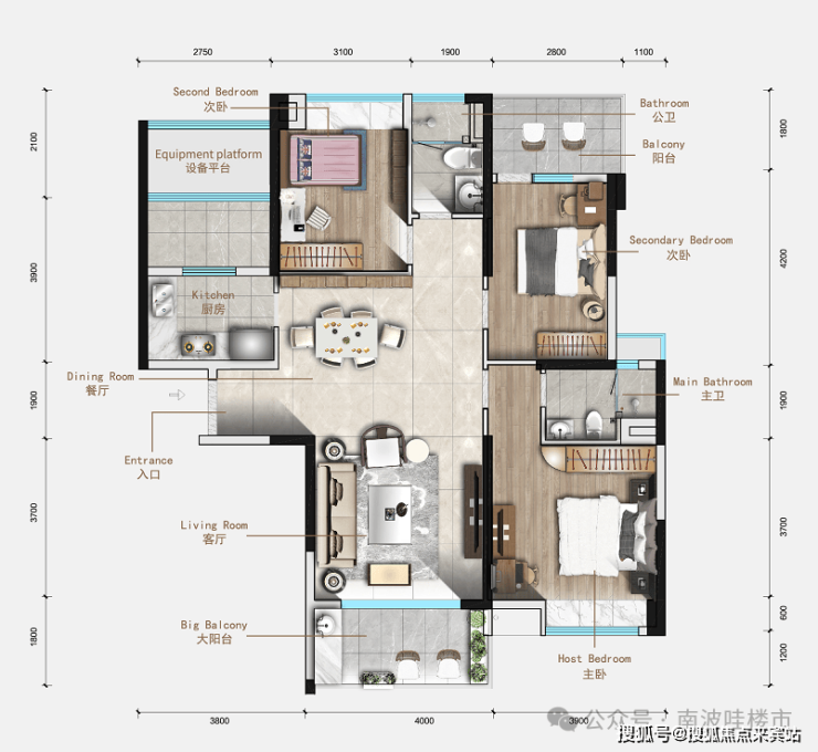 3.7米景观阳台,看中山龙脉五桂山,感受都市繁华景观,三房全南向户型,动静分区;