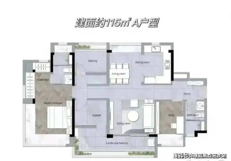 本案最大的优势在于零公摊设计,实用率接近100%,户型利用率远高于市面同类项目。约86㎡的三房采用横厅设计,南向主卧和大阳台配置,空间紧凑但舒适度优越;115㎡户型作为主力产品,面宽近13米,部分户型带步入式衣帽间和超长飘窗,空间感不输更大面积段;