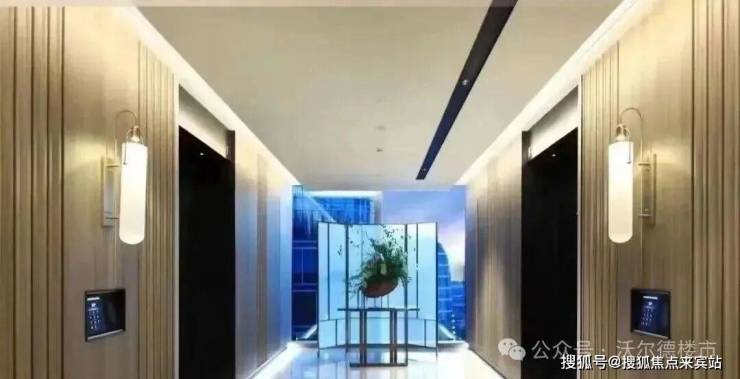 偏核心筒设计约70%使用率电梯厅自然采光 舒适候梯
