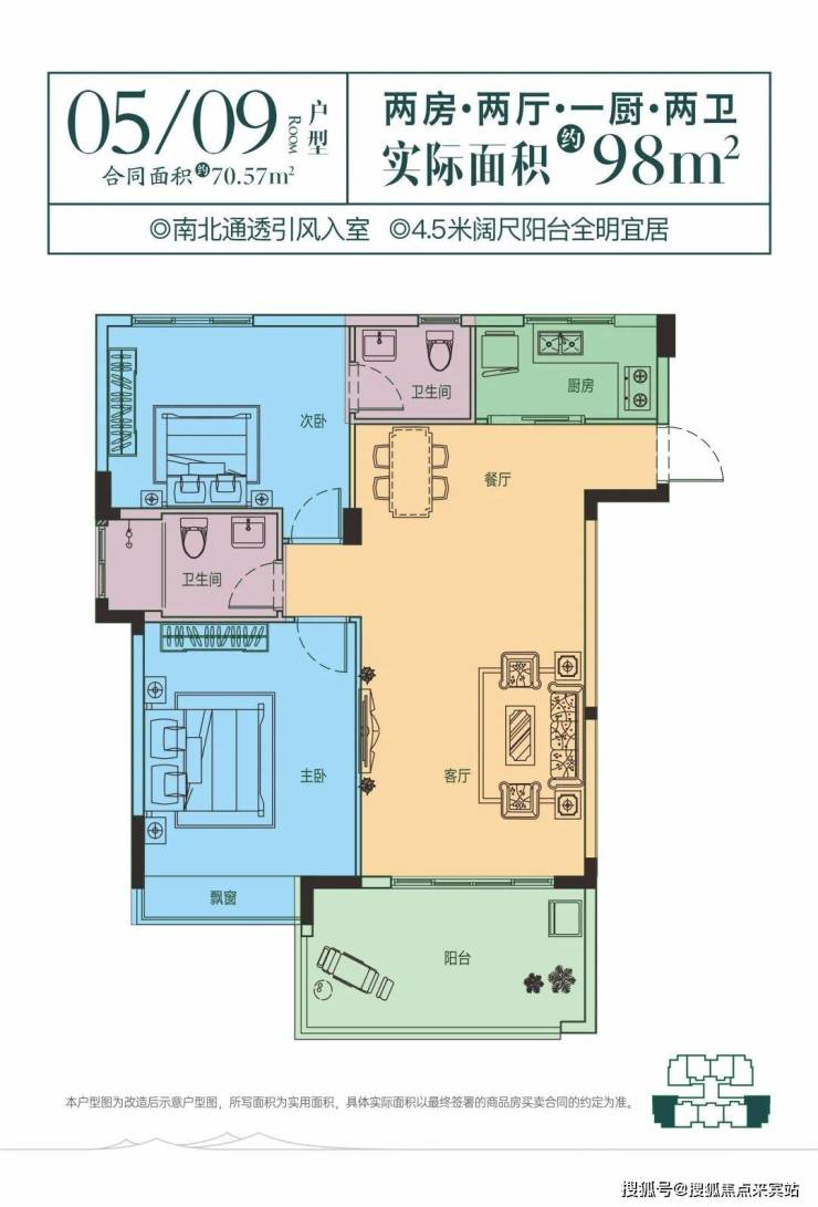 1、建筑面积70㎡ ,使用面积98平米
