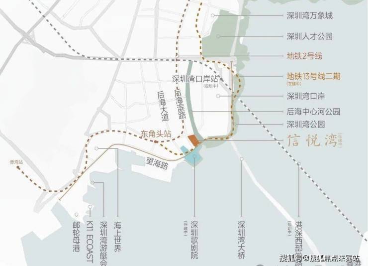 地铁:2 号线东角头站(700 米),在建 13 号线歌剧院站(2025 年通车),1 站到深圳湾公园,4 站到后海